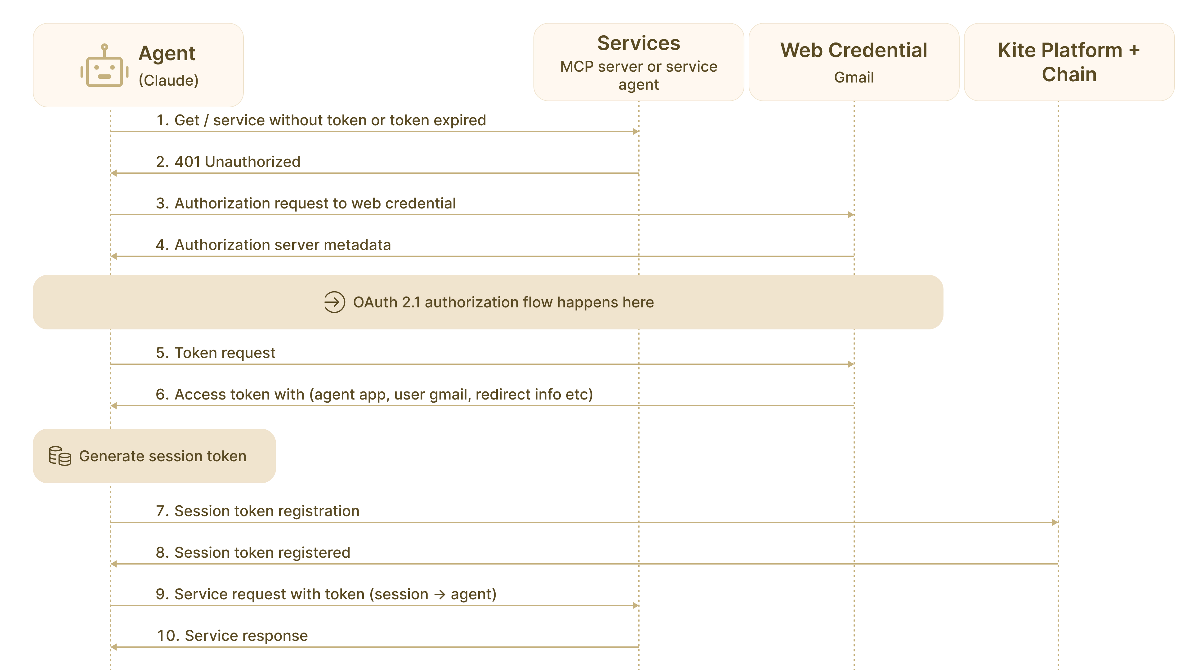 Kite’s technical contributions include: (1) A three-layer identity architecture separating user (root authority), agent (delegated authority), and session (ephemeral authority) identities through BIP–32 hierarchical derivation; (2) Programmable governance spanning services through unified smart contract accounts where compositional rules enforce global constraints at the protocol level; (3) Agent-native payment rails using state channels that achieve sub–100ms latency at approximately $0.000001 per transaction. We provide a formal security analysis of our design. Our multilayer revocation mechanism combines immediate peer–to–peer propagation, cryptographic certificate verification, and economic slashing to ensure that compromised agents get terminated instantly.