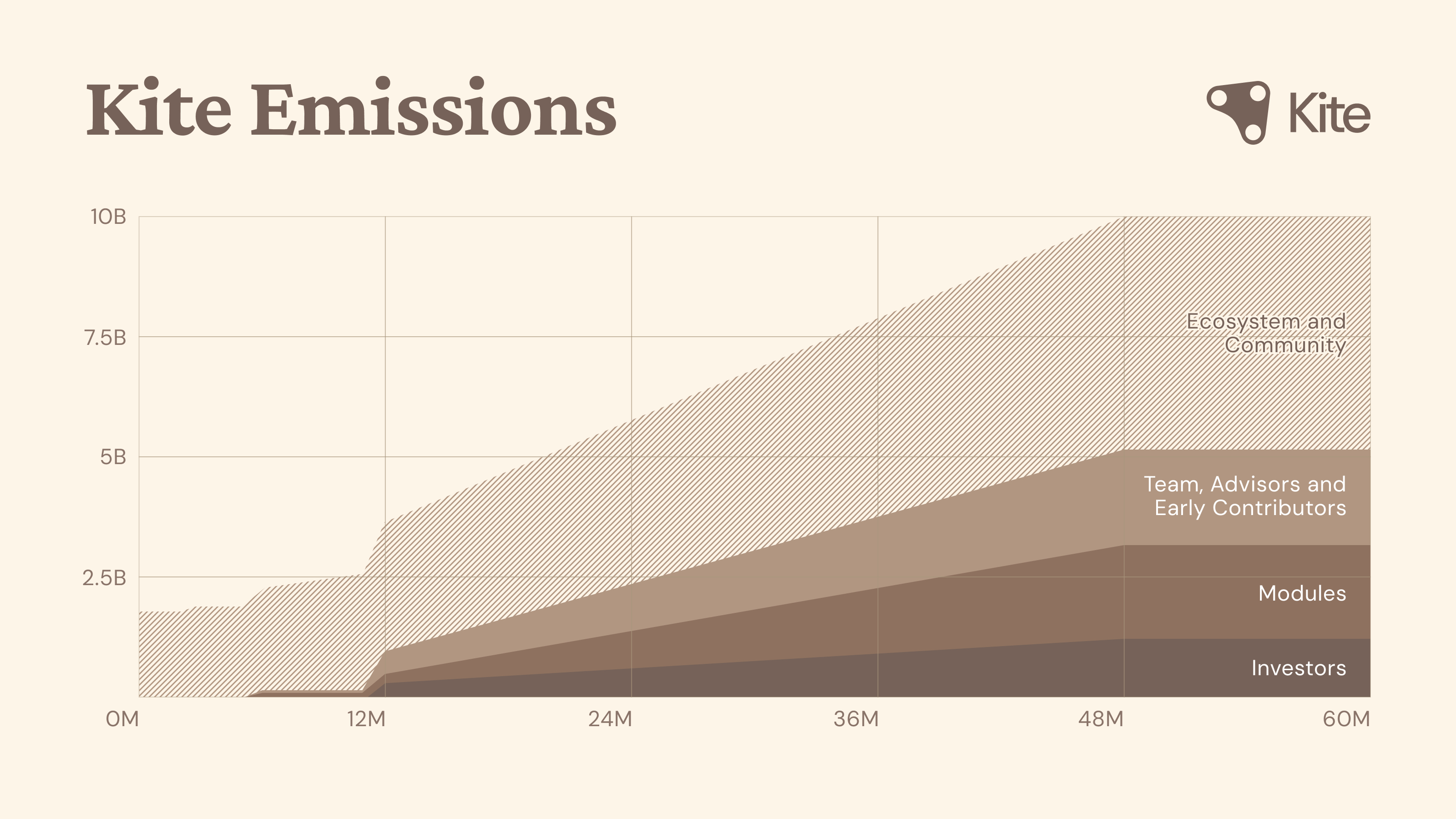• Team, Advisors, Early Contributors (20%). Team and advisor tokens align the long–term incentives of Kite’s builders with the network’s sustained success. These allocations reward early contributors, developers, and strategic advisors who are building and scaling the network, with multi–year vesting schedules that promote stability and accountability as the ecosystem matures.