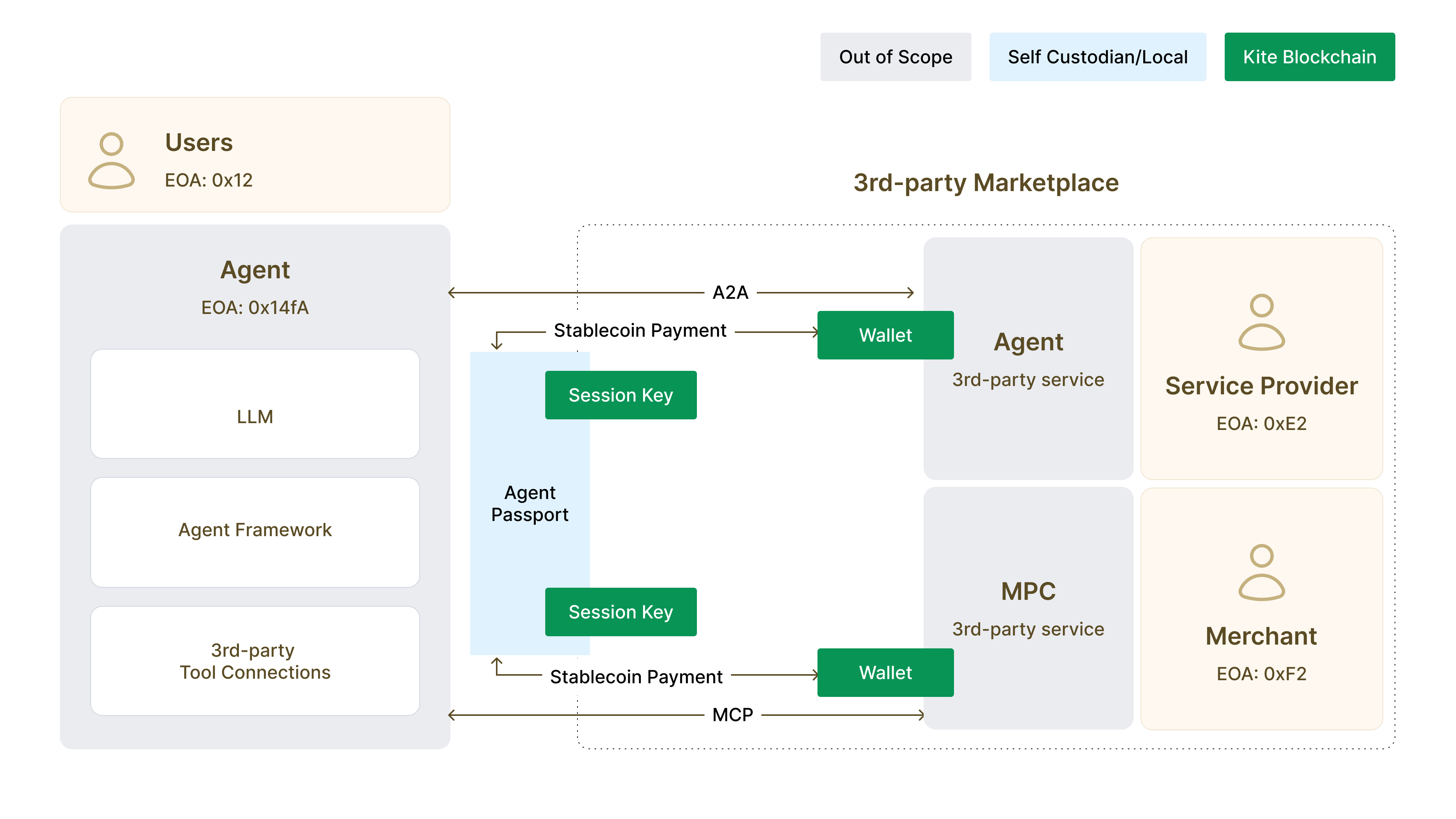 This paper introduces Kite, the first comprehensive infrastructure system architected from first principles to treat AI agents as first-class economic actors. We address three fundamental failures of existing systems: credential management complexity, payment infrastructure barriers, and unverifiable trust. Our solution, the SPACE framework, along with integratiblity with x402 protocol, provides: (1) Stablecoin-native payments with sub–cent fees and instant finality; (2) Programmable constraints cryptographically enforced through smart contracts; (3) Agent-first authentication via hierarchical identity with mathematical delegation; (4) Compliance-ready immutable audit trails; and (5) Economically viable micropayments enabling pay–per–request pricing at global scale.