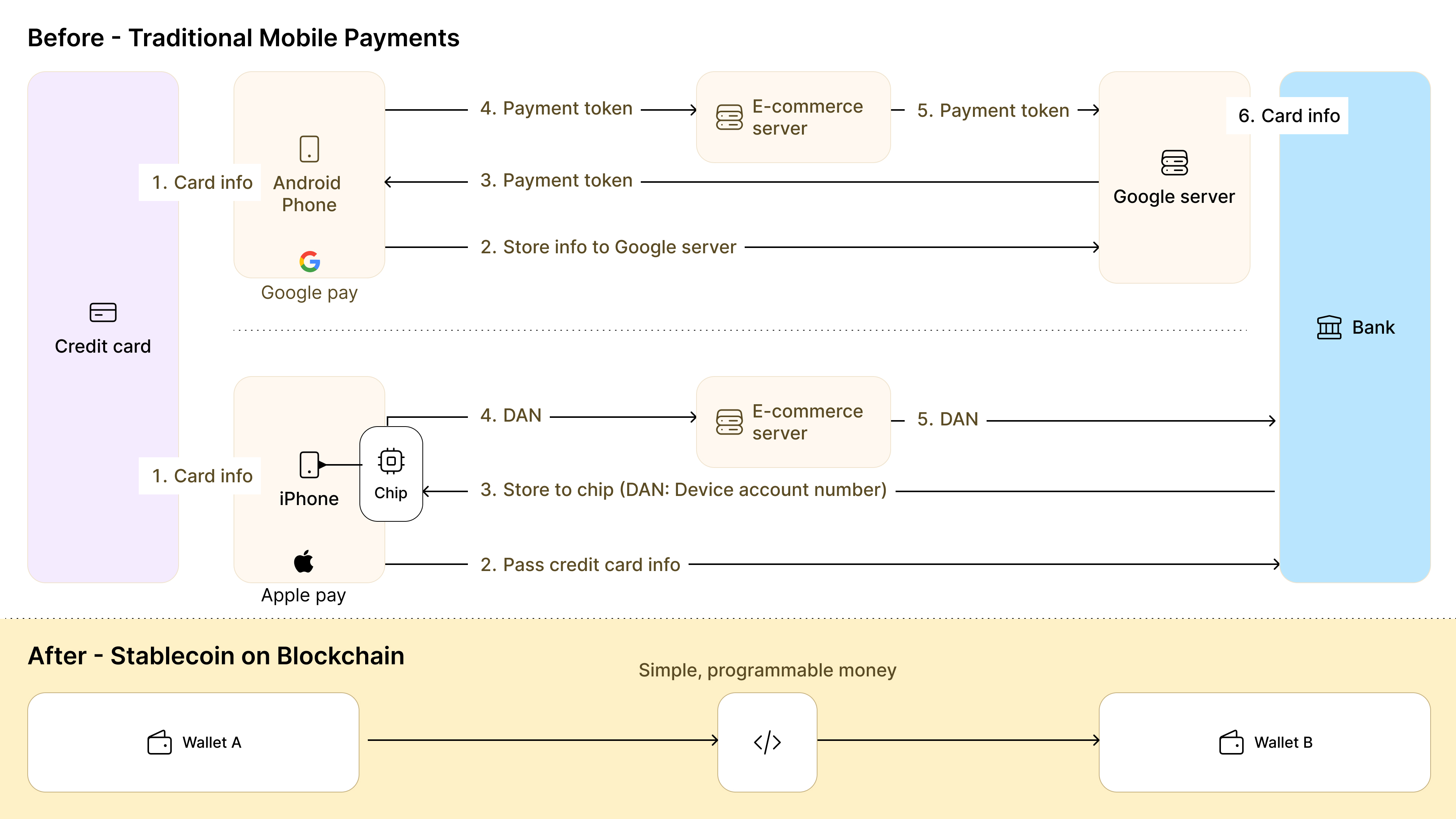 Blockchain–based stablecoins transform this equation entirely. A cryptographically signed stablecoin transfer from wallet to wallet achieves what traditional systems cannot: